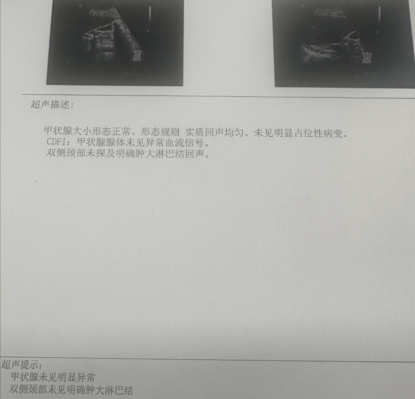 更新,又过了一个月了, 前几天去了了检查,甲状腺已经没有问题,心情还是很愉悦的,也祝大家也早日康复